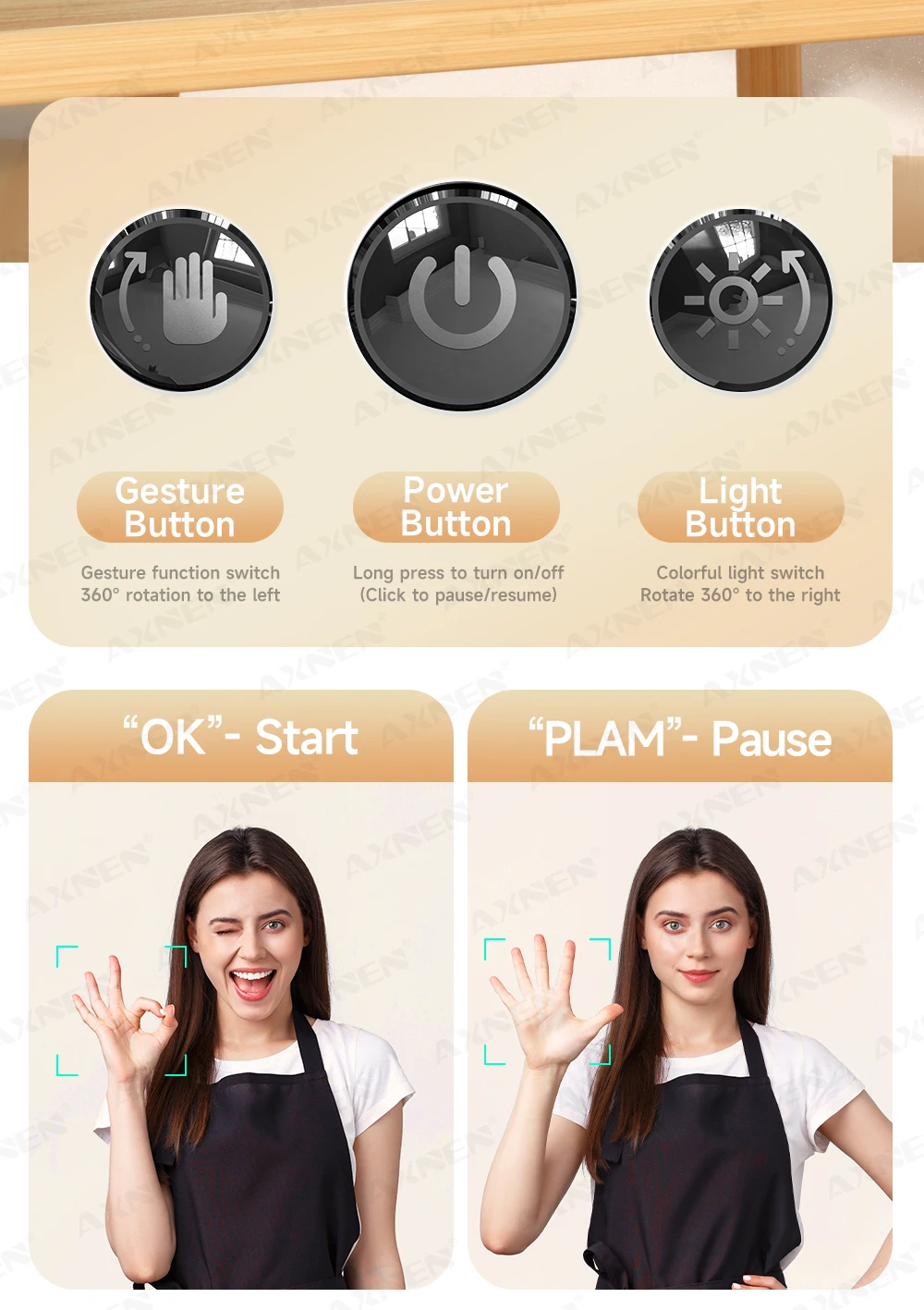 --Gesture Control — "OK" to start tracking, palm to pause