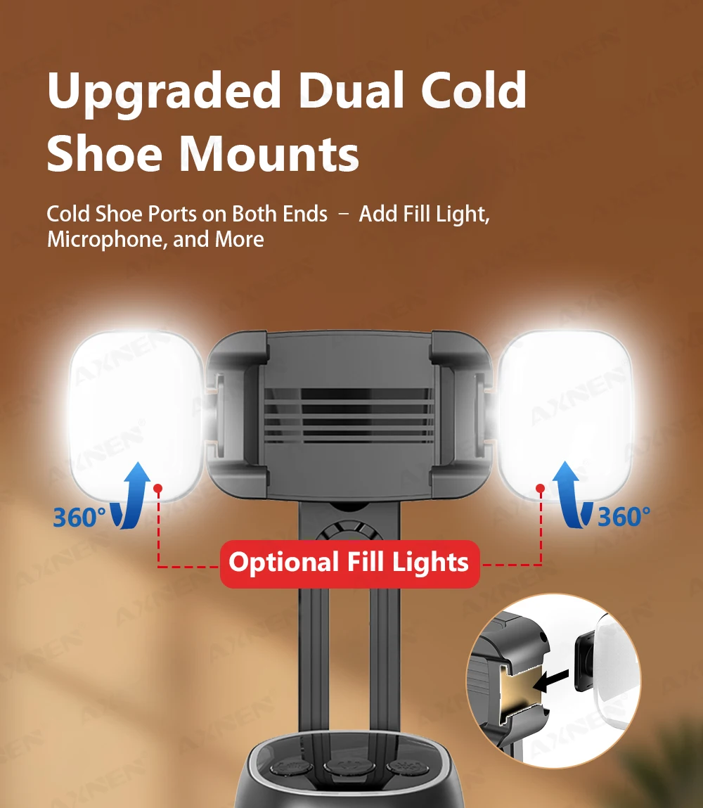 Easily switch between front and rear cameras, adjust the lens angle, and expand your setup with dual cold shoe ports for microphones or fill lights. Whether on a table or mounted on a tripod, the P05 ensures you’re always center stage.