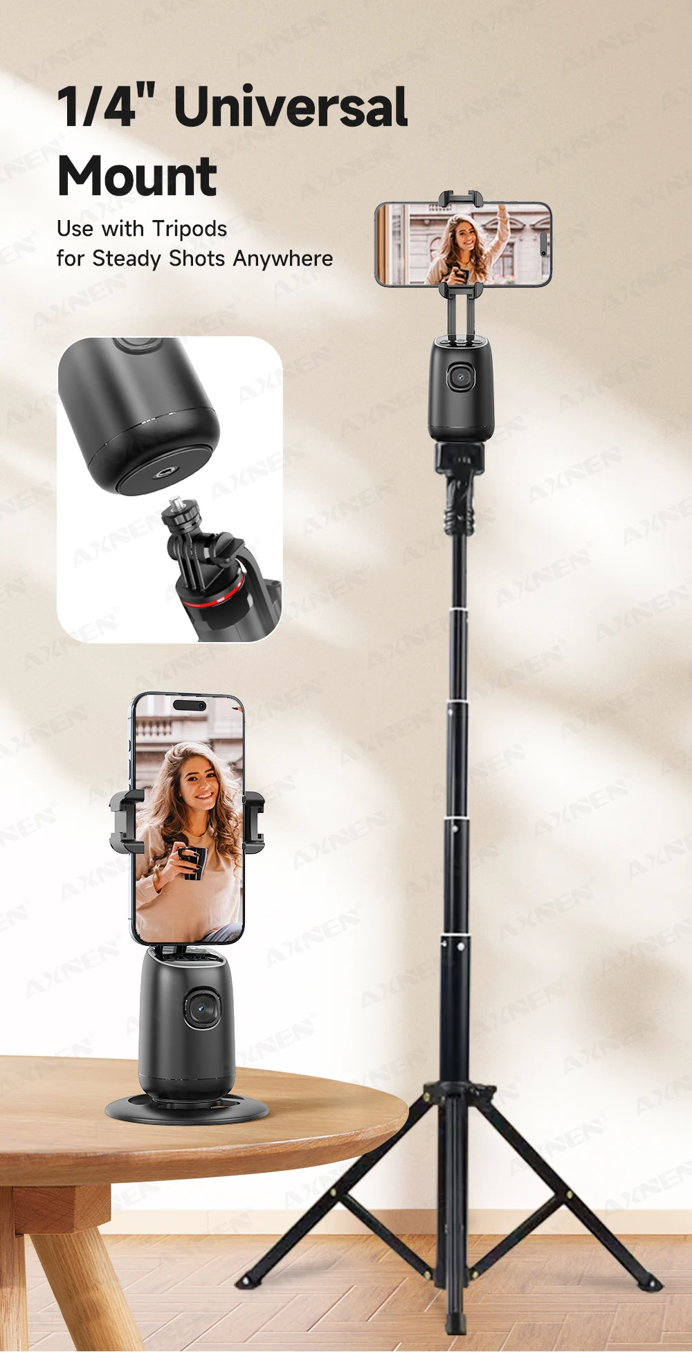 --360° Smart Face Tracking — Smooth, automatic framing