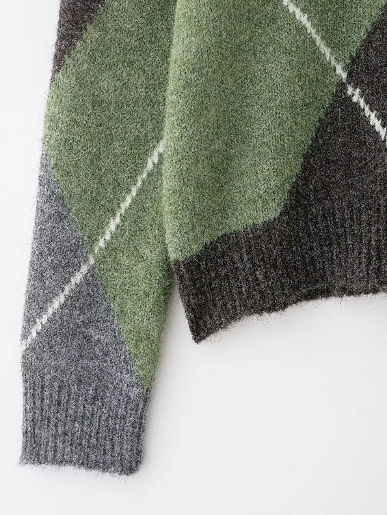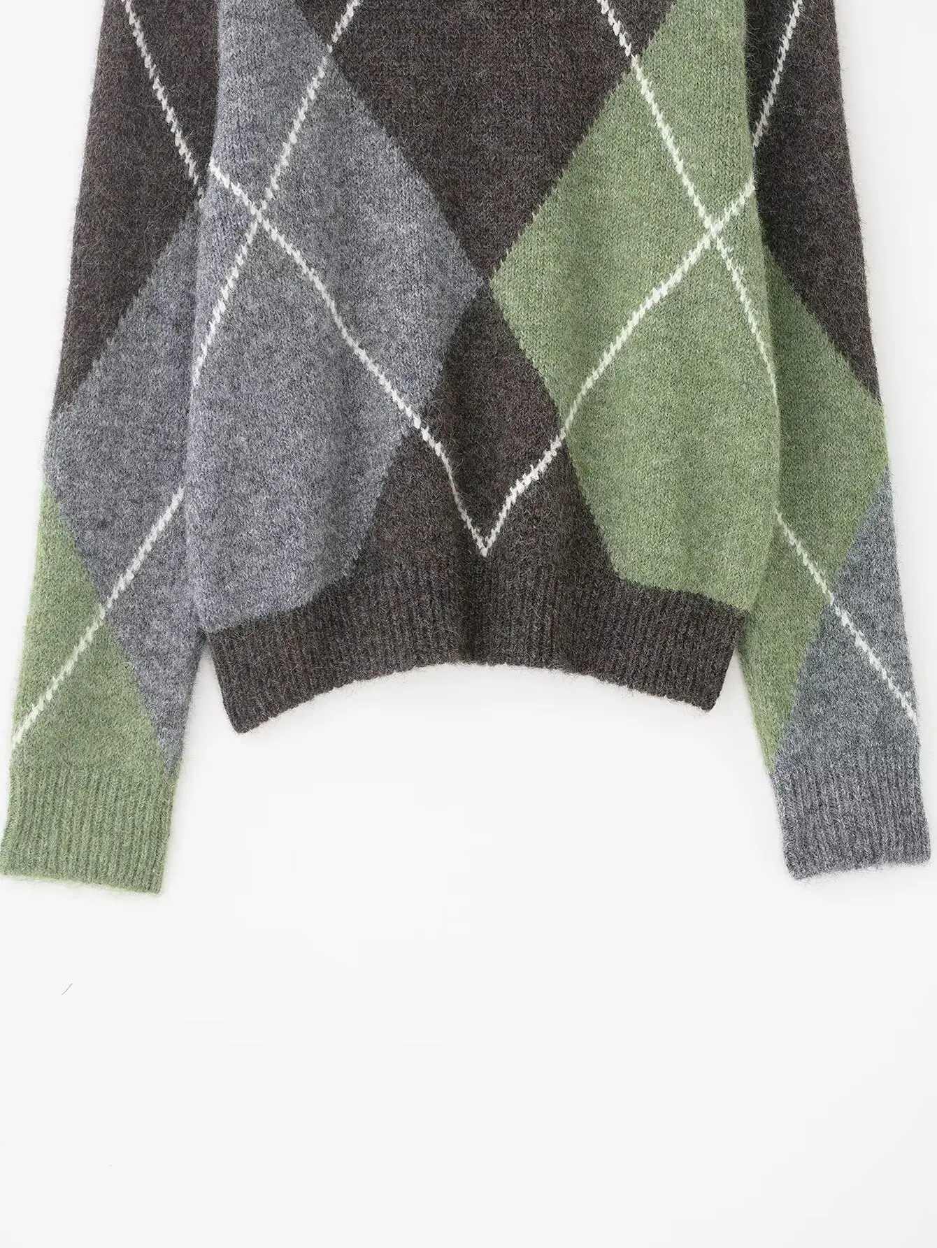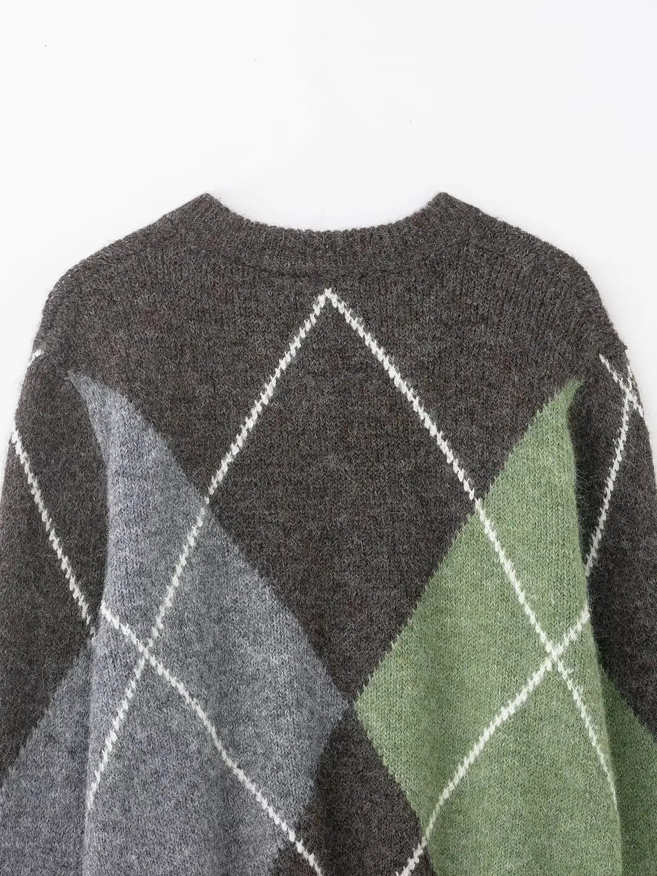 HH Women Fashion Argyle Knitted Sweater Casual Long Sleeve V Neck Pullover Sweater 2026 Spring Trend Knitwear Chic Tops