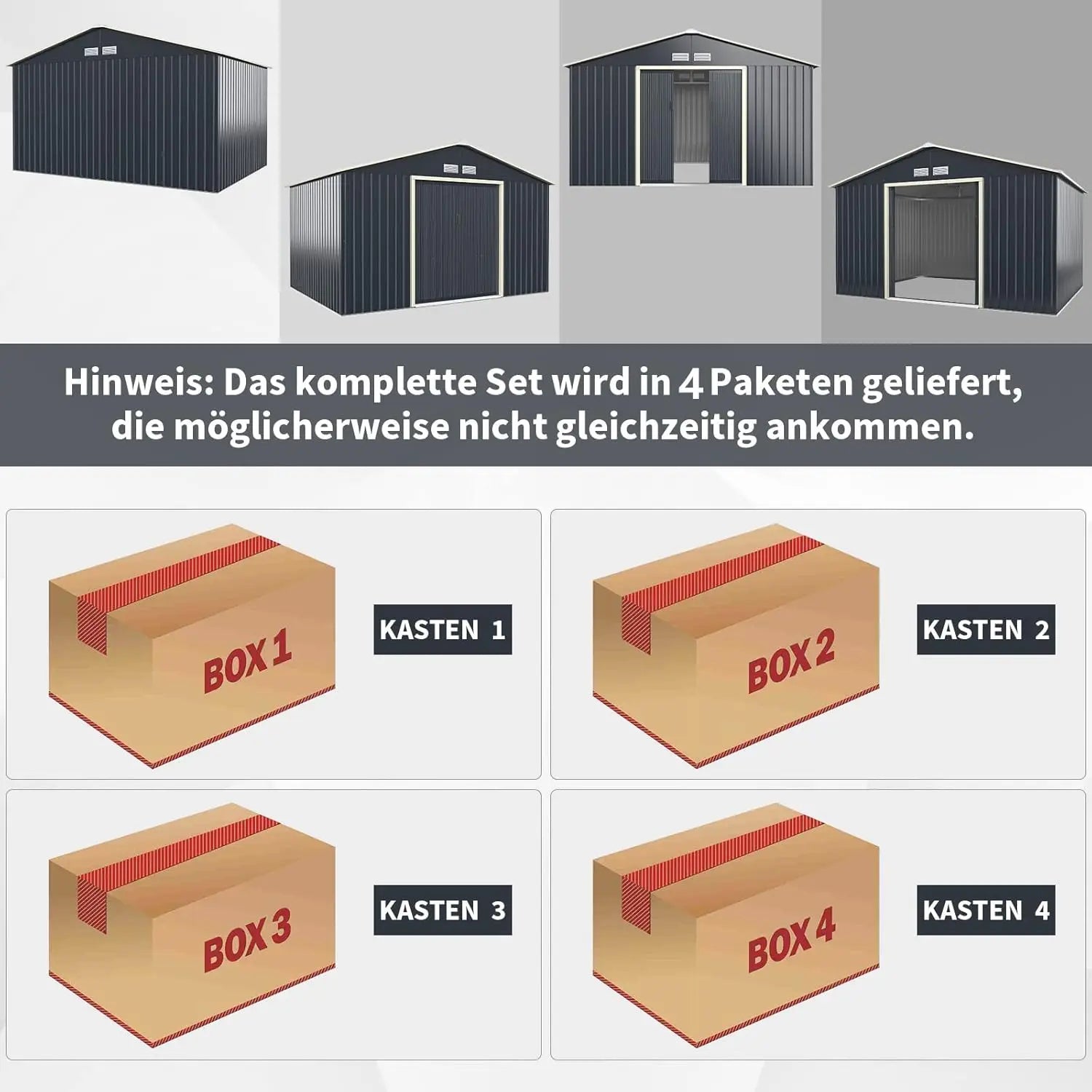 Description:Our tool shed is ideal for outdoor areas. You can use it for tools, rubbish, animals or anything else. Thanks to the powder-coated steel, it is robust and long-term. All parts are connected together by metal screws, which makes the items inside well protected. In addition, the sliding doors can be locked for safety. The 4 slots ensure air circulation. This shed offers you a floor area of 10.85 ㎡, covering many needs. With the detailed instructions (English language not guaranteed), assembly is very quickly.