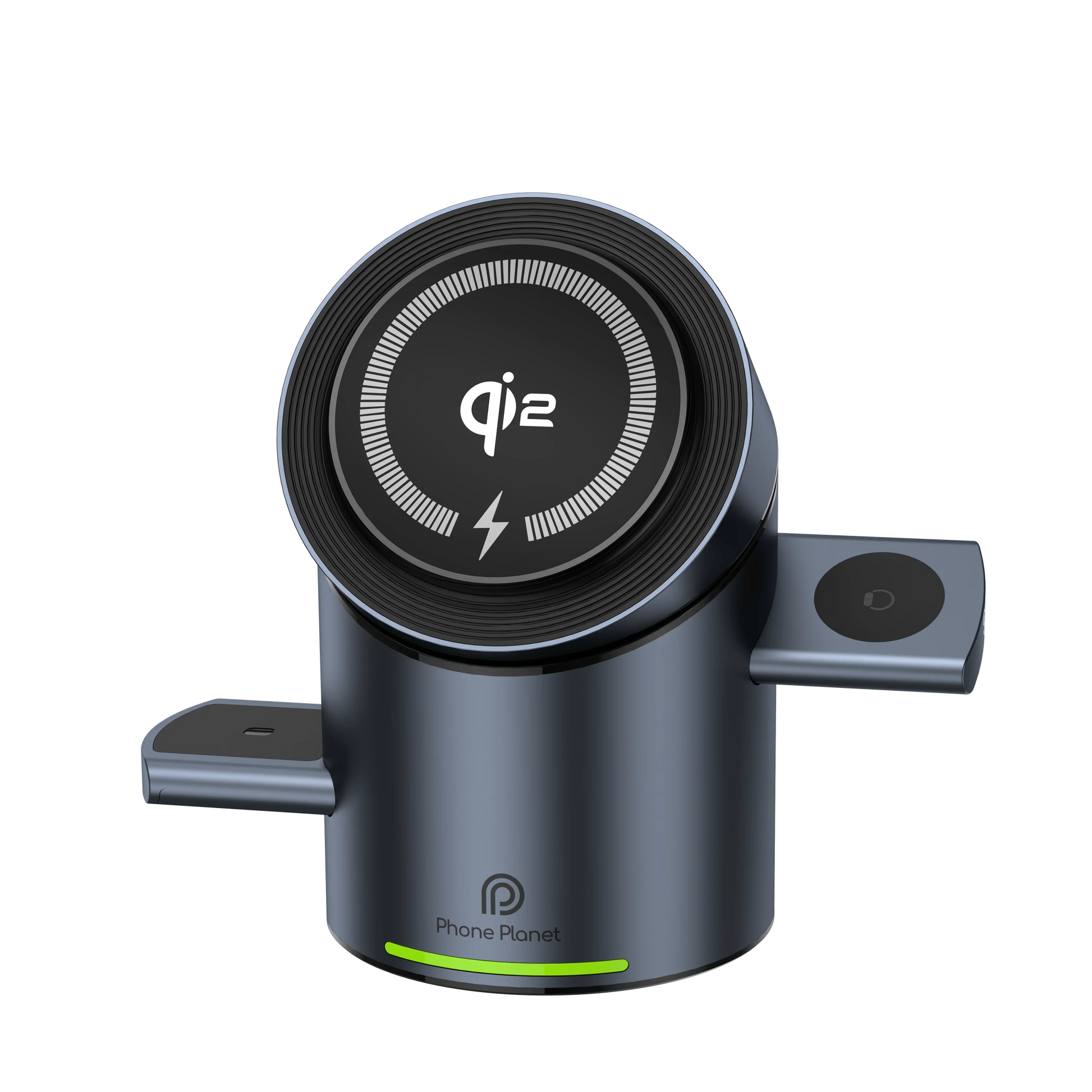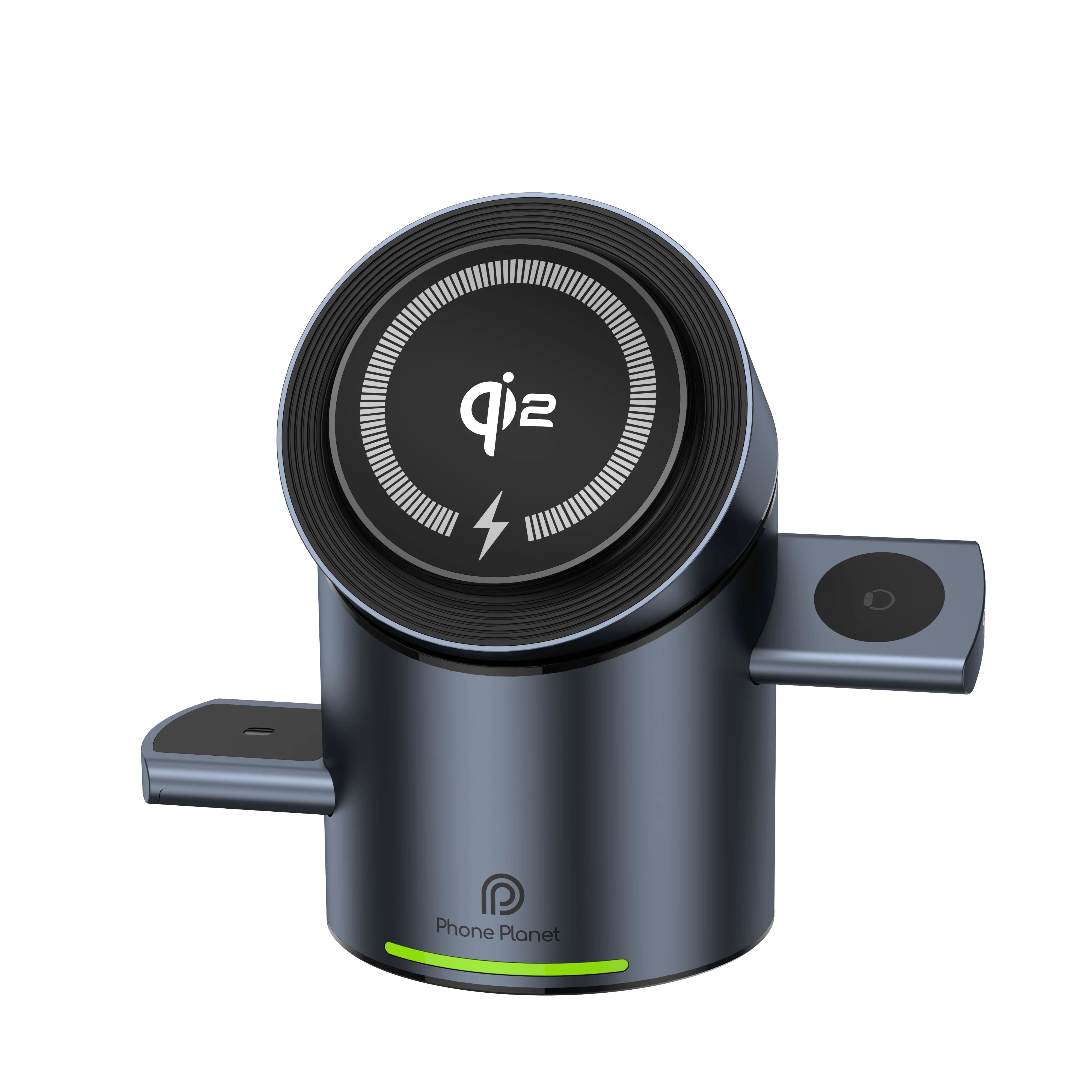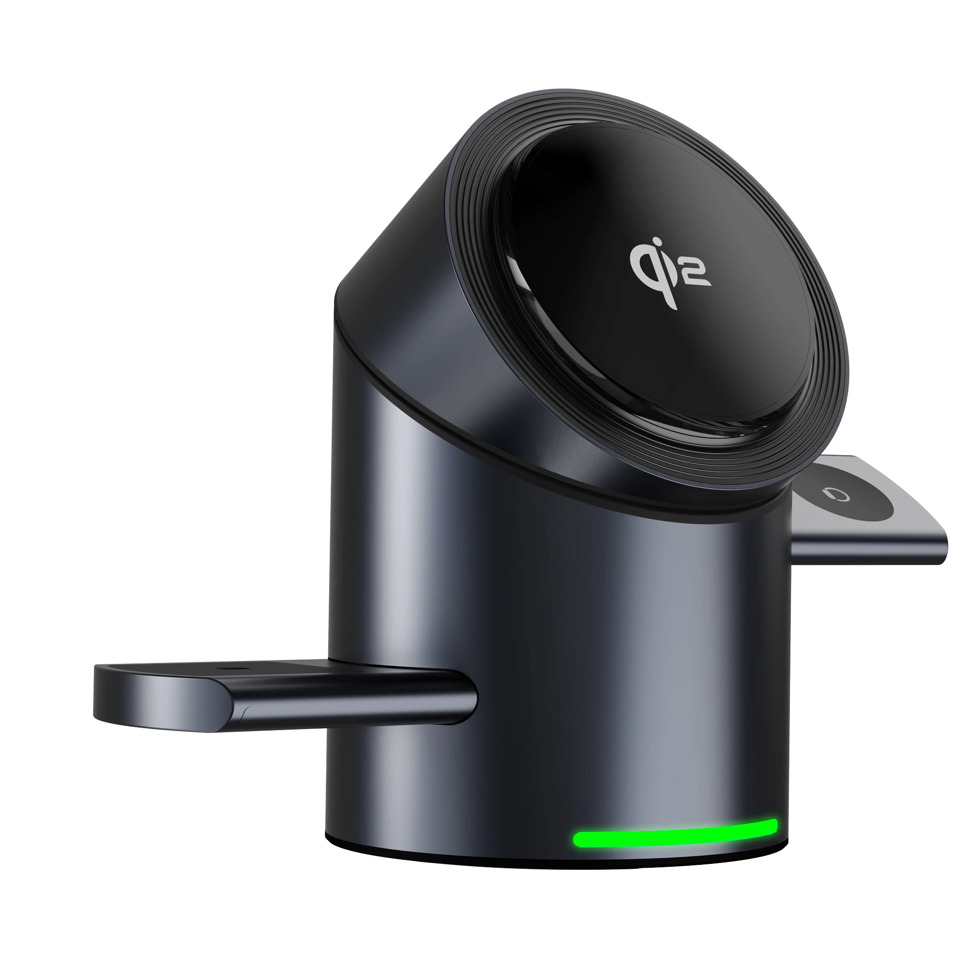 New Truly Qi2 3In1 15W Magnetic Touch Button Wireless Charger for Iphone Android IOS Phones Smart Watches Fast Charging Station